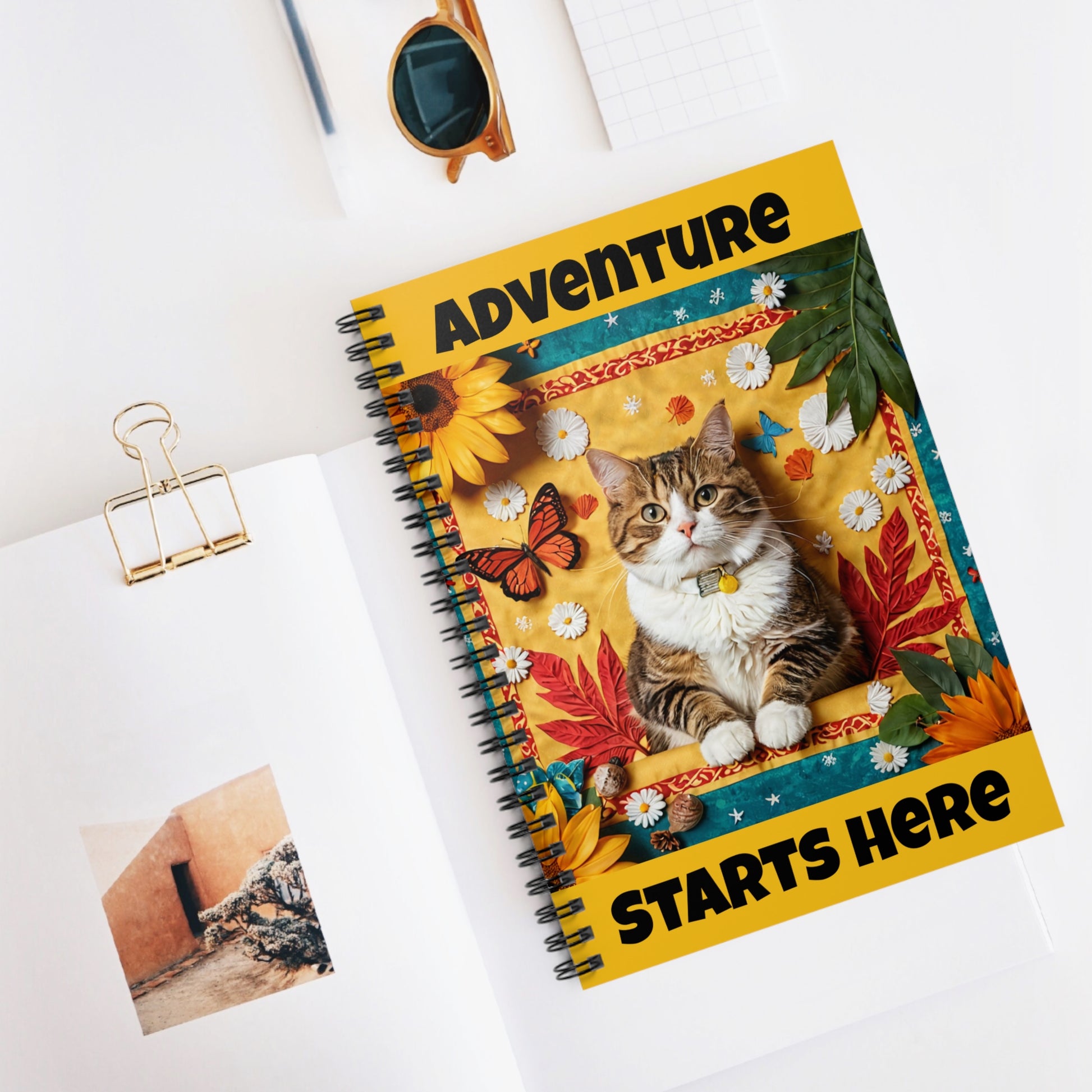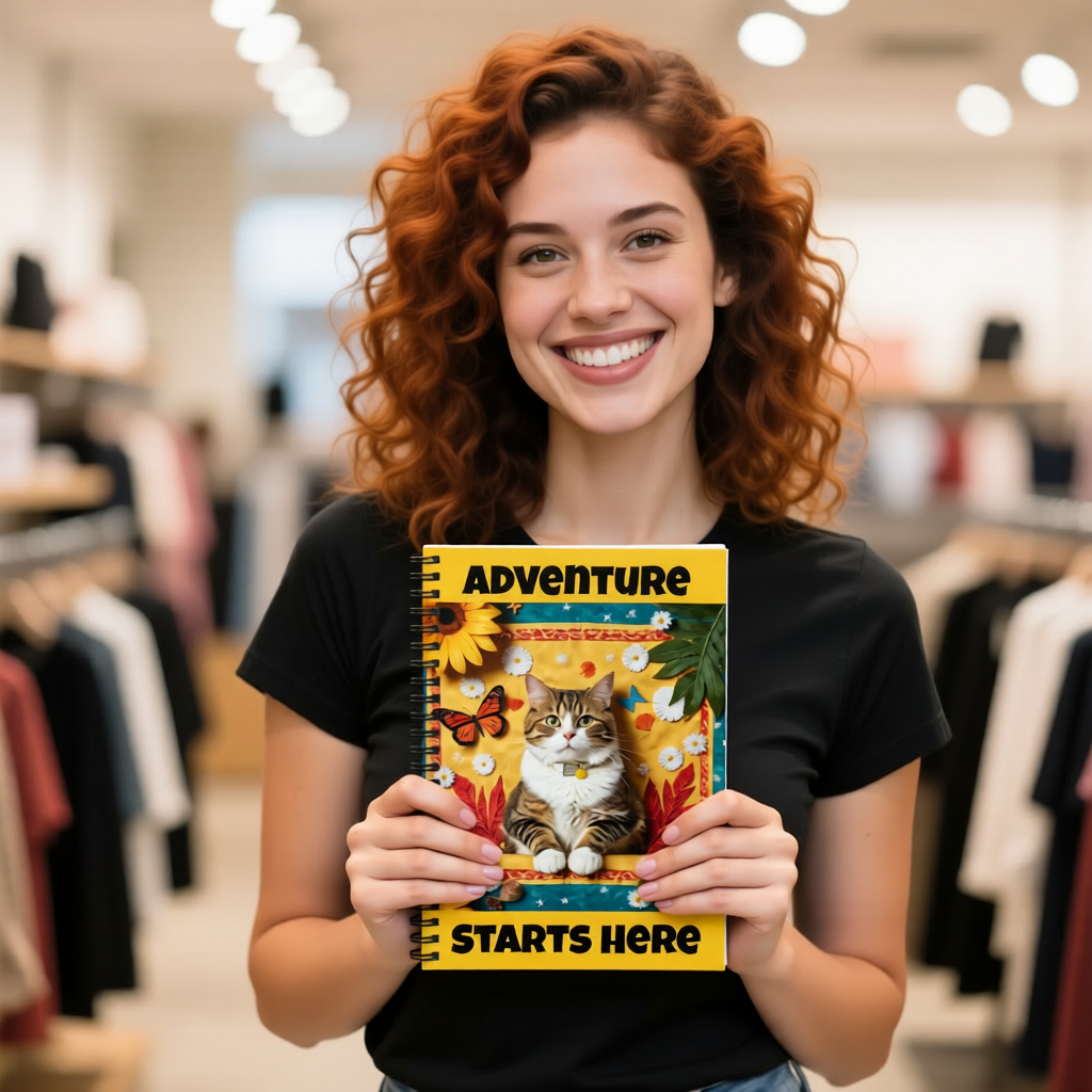 Pack your adventures with this whimsical spiral notebook featuring a hippie cat ready for a road trip! Perfect for shopping lists, school notes, poems, or creative brainstorming, this notebook is a versatile companion for everyday life.