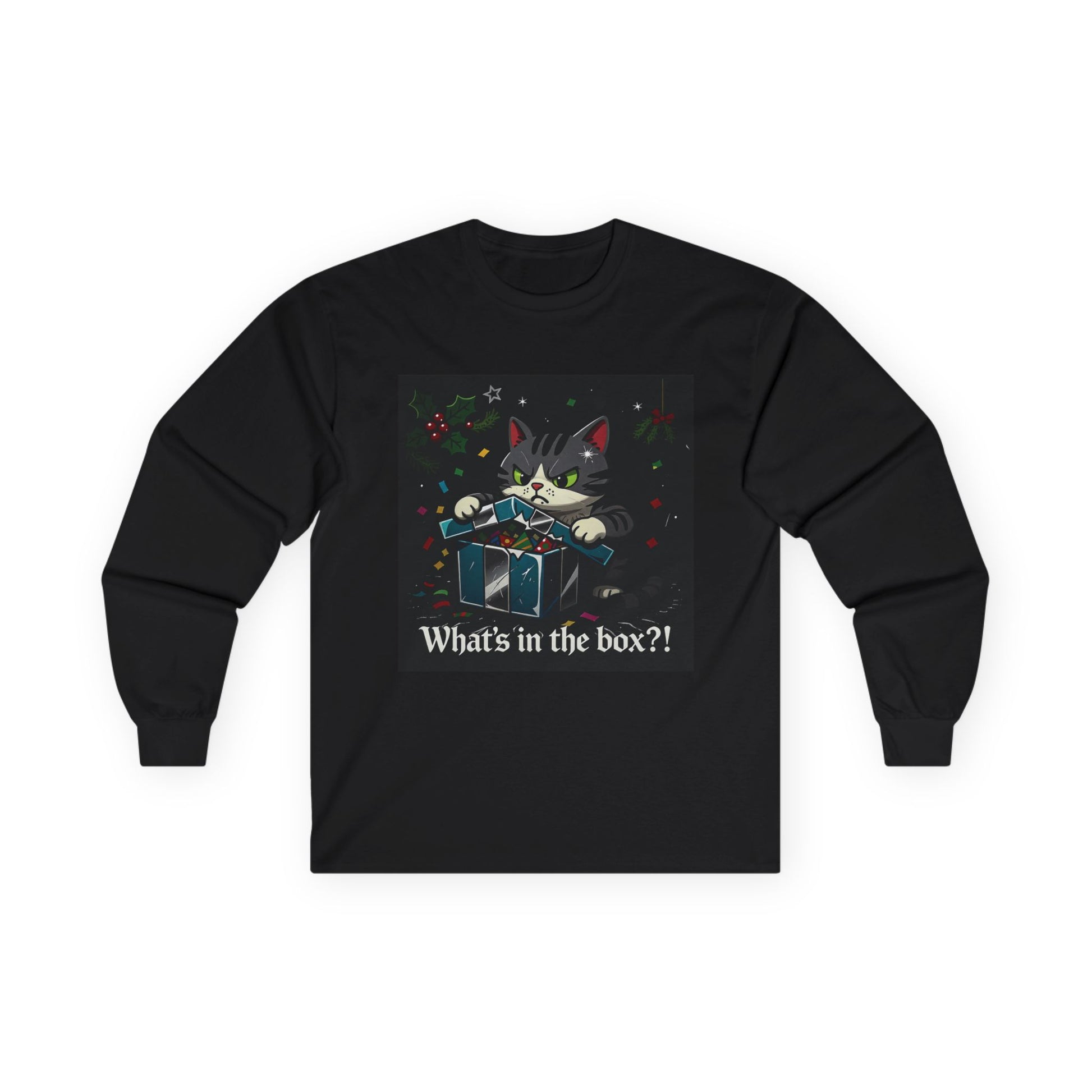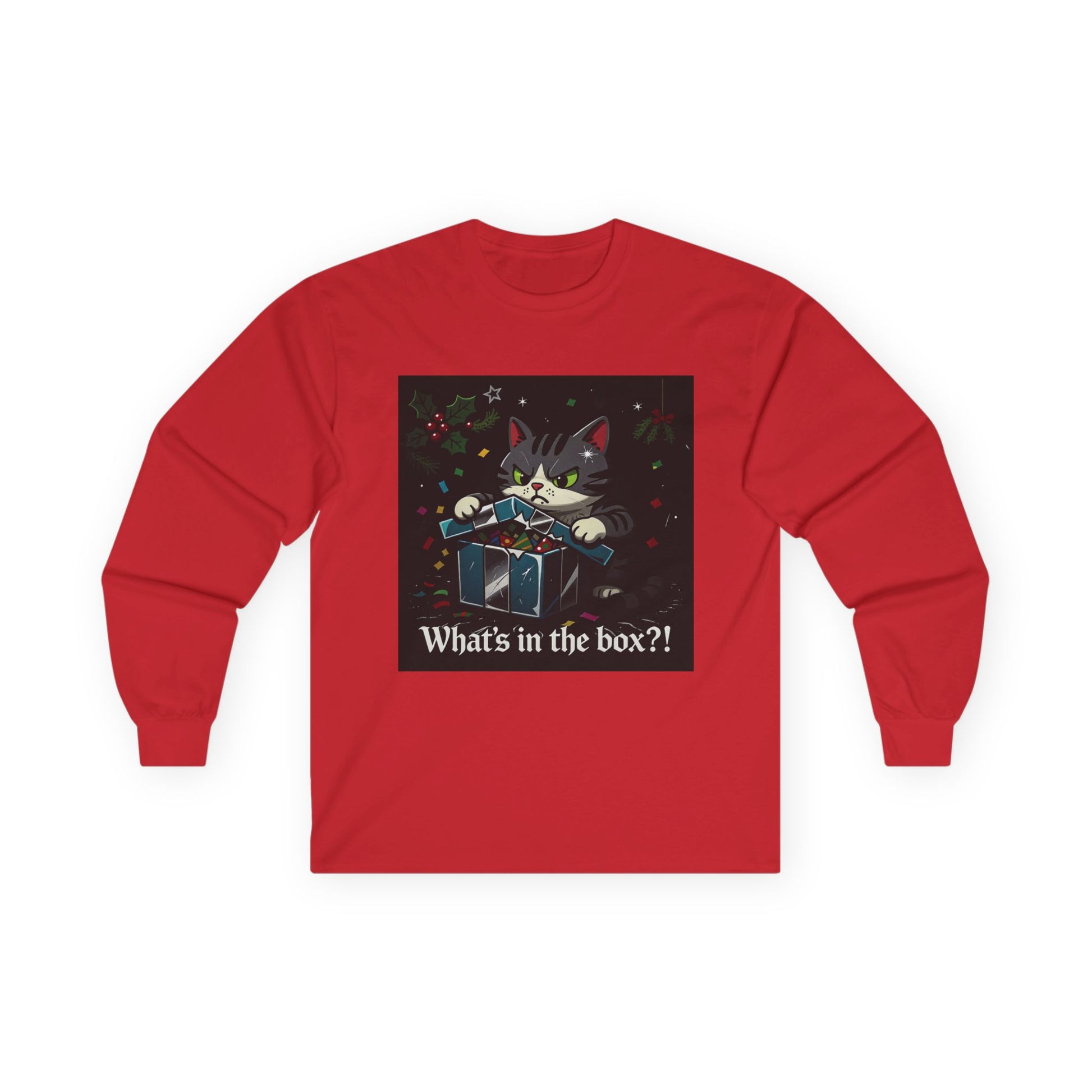 This Unisex Ultra Cotton Long Sleeve Tee blends whimsy with comfort, featuring a bold design of a cat furiously opening a gift. A bit more formal than a standard t-shirt, this long sleeve tee offers a polished yet cozy feel, with sleeves that act as a flattering frame for your outfit.