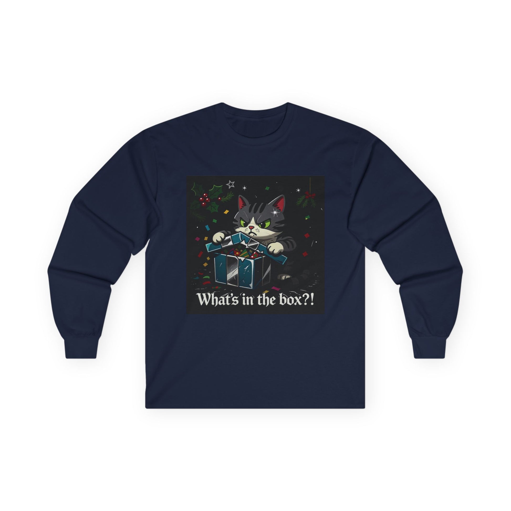 Cat Furiously Opening a Gift Unisex Ultra Cotton Long Sleeve Tee – Whimsical Design for Everyday Wear