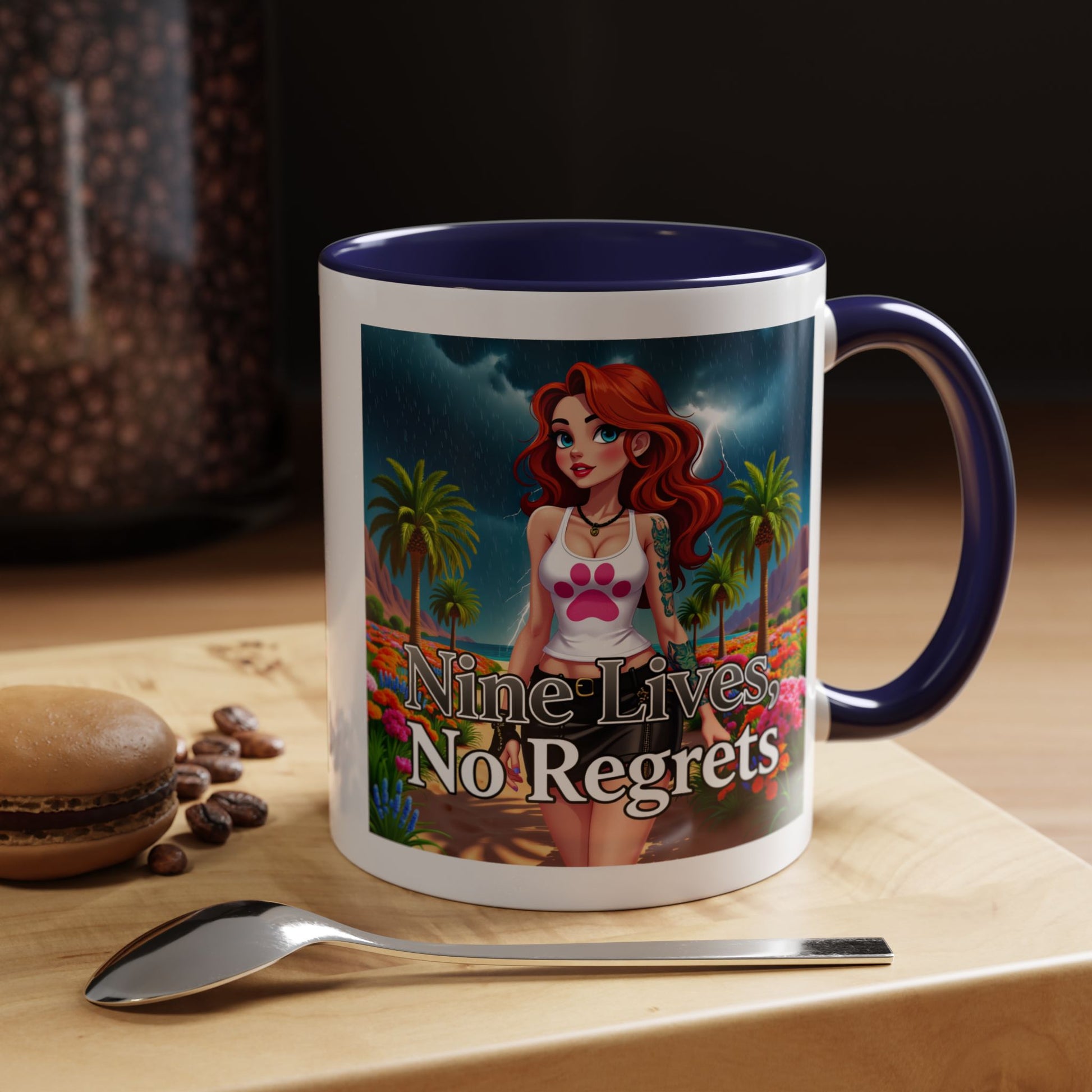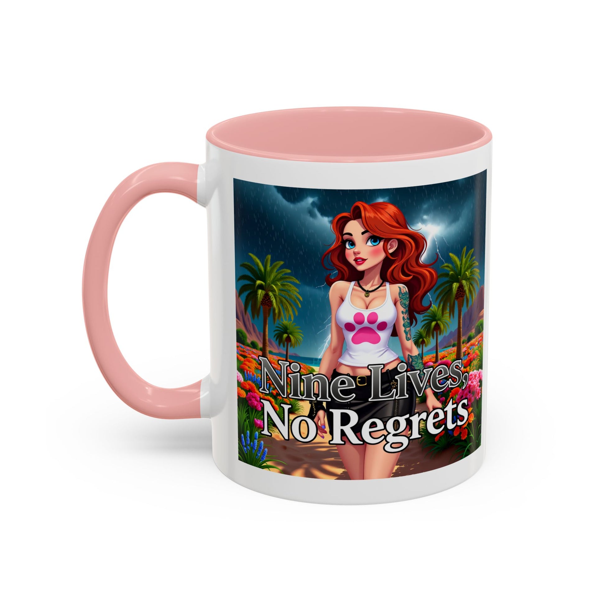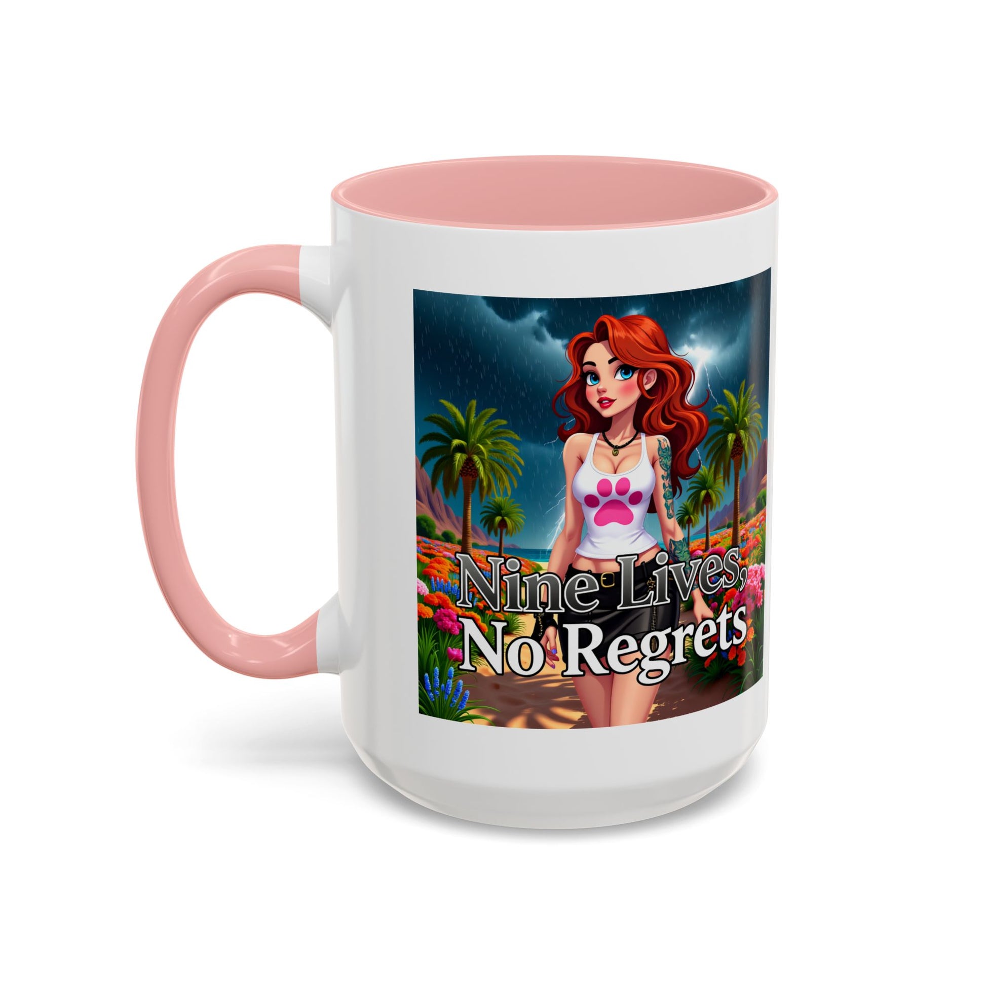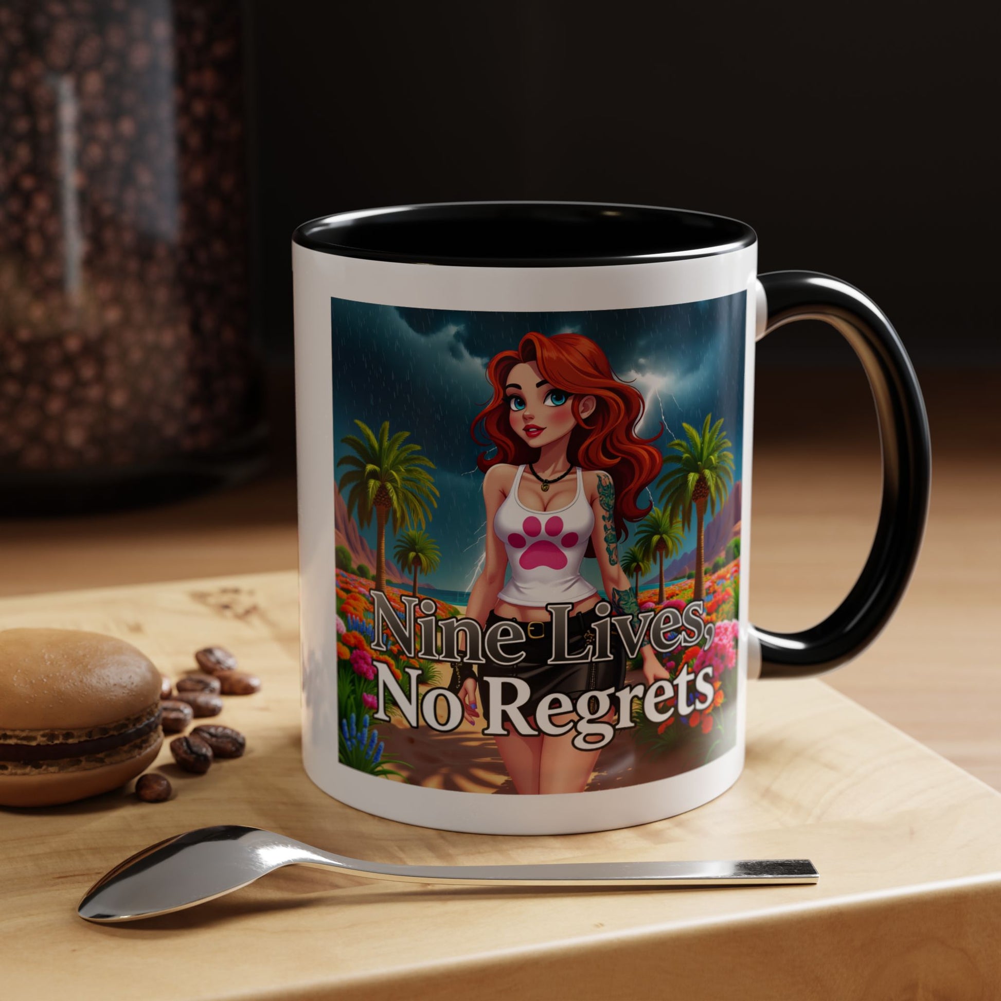 Elevate your morning ritual with this eye-catching accent coffee mug featuring a young urban girl walking down a sunlit beach, embodying the spirit of "Nine Lives No Regrets"! Perfect for coffee, tea, and chocolate lovers, this mug is designed to make that "aaahhh!" moment even better.